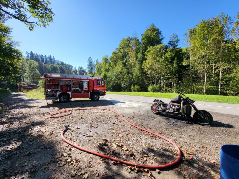 Auf der Strecke Aachsäge - Hoffeld ist ein Motorrad in Brand geraten. Die aufgebotene Feuerwehr konnte das Fahrzeug löschen.